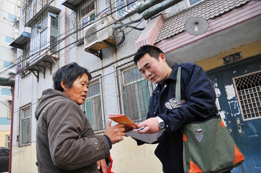 在四號樓下,小胡遇見一位正在散步的大媽,主動熱情地招呼,“您好阿姨,我是供熱站的小胡,您家中暖和不?室溫大約多少度?”在聽到大媽說家中室溫有20度時,小胡滿意地笑了,他隨即掏出一份供熱宣傳手冊送給大媽,耐心地講解了部分供熱小常識,并告訴了他本人的電話號碼,“阿姨,有事您給我打電話。”
